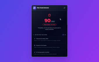Vibe Code Detector to darmowe rozszerzenie do przeglądarki Chrome, które pozwala użytkownikom na szybkie zidentyfikowanie narzędzi AI oraz platform, które zostały użyte do stworzenia danej strony internetowej. Dzięki zaawansowanej analizie heurystycznej, rozszerzenie jest w stanie wykryć takie technologie jak Tailwind, Shadcn, Radix oraz Lucide. Użytkownicy mogą w prosty sposób odkrywać 'DNA' stron stworzonych przy użyciu różnych narzędzi, co czyni go cennym narzędziem dla programistów i entuzjastów technologii.